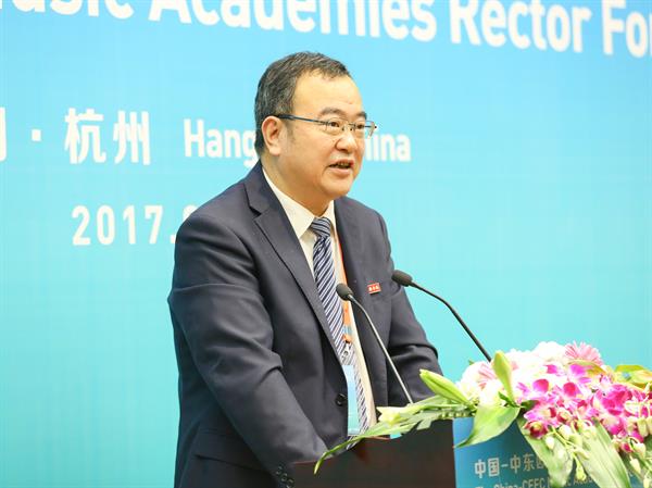 褚子育在致辞中指出,中东欧16国是“一带一路”战略的重要合作伙伴,特殊的地理位置和历史,造就了各民族底蕴深厚、绚丽多彩、独具魅力的音乐艺术文化。中东欧16国音乐学院在全球音乐高等教育和艺术界具有举足轻重的地位,培养了德沃夏克、李斯特、肖邦等一批中国人民耳熟能详的音乐艺术大师,学院真诚希望能与中东欧16国音乐学院加强交流,学习借鉴先进的办学理念和经验,搭建合作共赢的友谊桥梁。