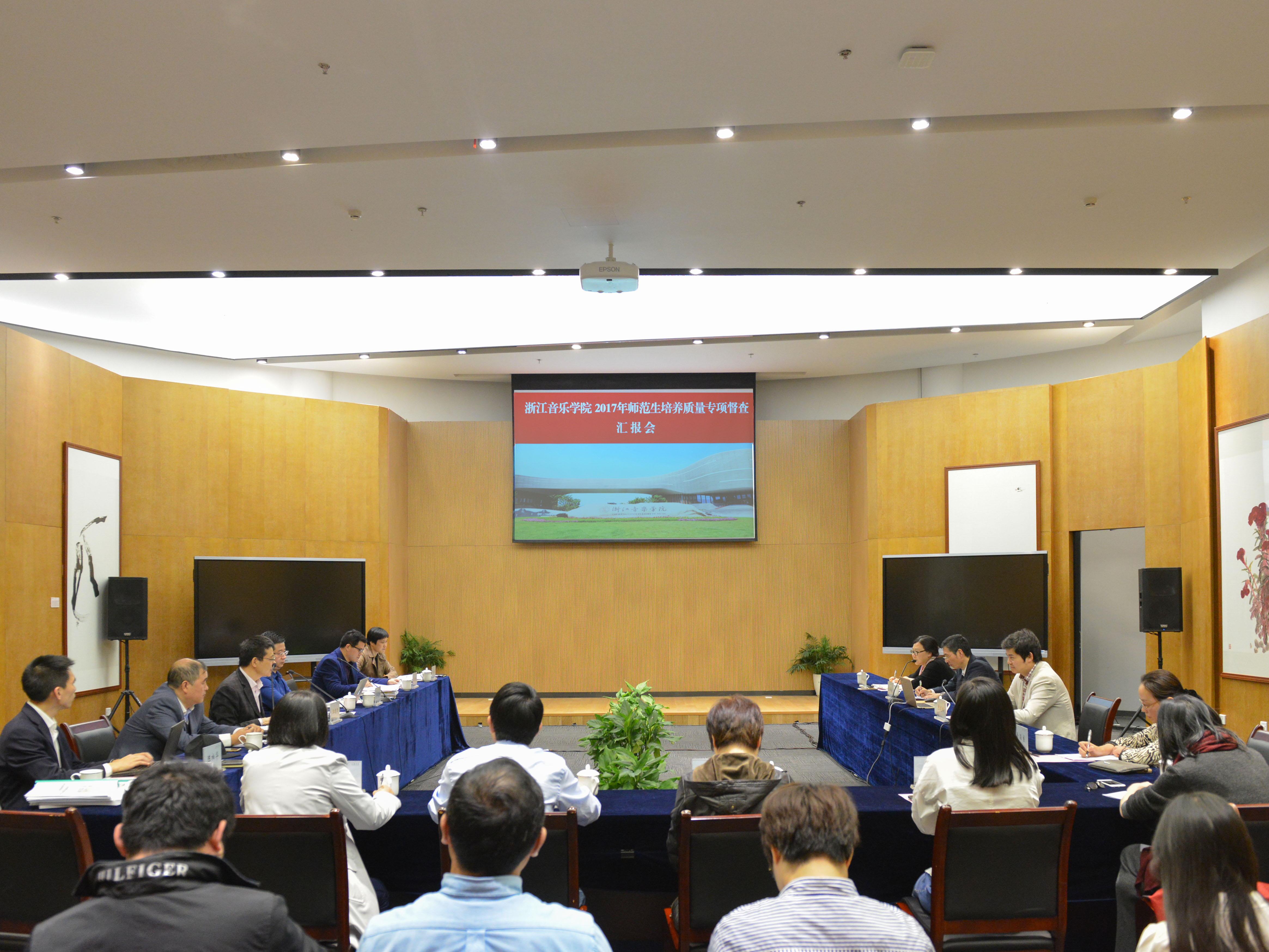 反馈会上,专家组充分肯定了学院教学工作的成绩和办学特色,大家一致认为,学院办学定位起点高、顶层设计立意高、办学条件好,发展状态喜人;实习实践数字化、教学资源信息化、教学软硬件环境好,较好地支撑和满足了师范专业的教学需要;培养具有弹、唱、跳、编、曲、教等多种能力的综合型高素质音乐舞蹈教育人才,专业特色鲜明、能力定位明确。同时专家组也就如何进一步优化建设具有浙音特色的课程标准,吸收一线的优秀中小学教师参与到师范生培养中,深化拓展培养模式,提出了一些具体的建设性的意见和建议。