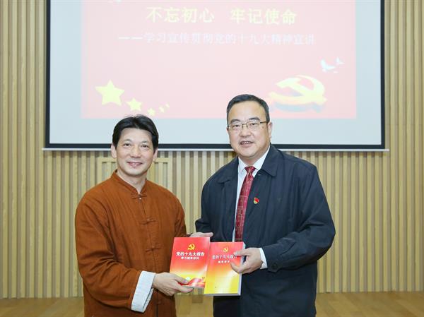 报告会现场,学院领导教师代表赠送了《党的十九大报告辅导读本》《党的十九大精神辅导百问》和新《党章》。