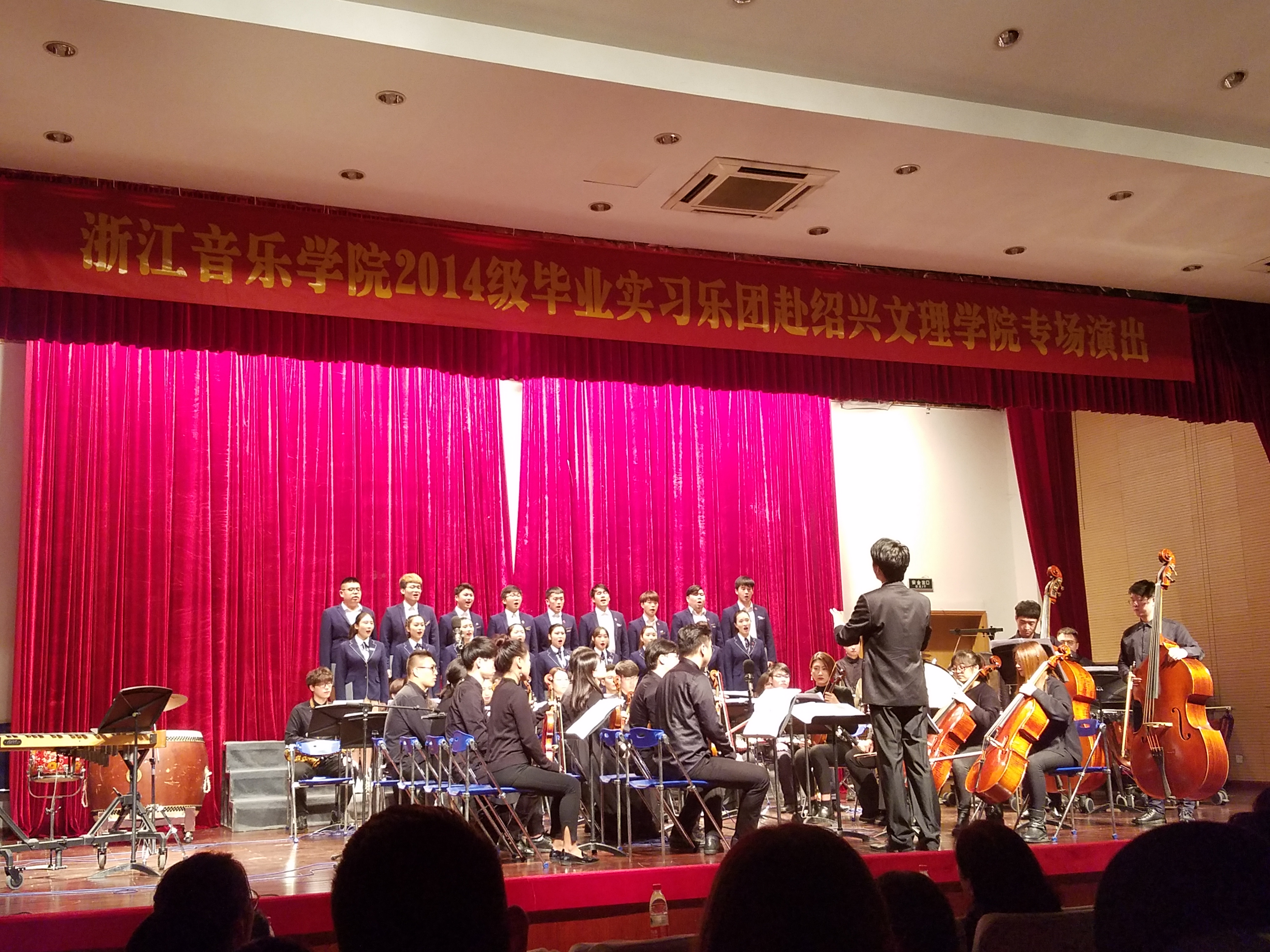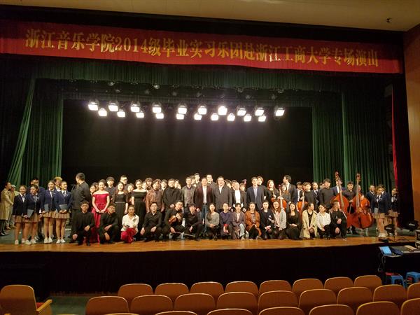 1117日至22日,学院2014级毕业生实习乐团在浙江工商大学、浙江商业职业技术学院、绍兴职业技术学院、绍兴文理学院4所高校倾情上演。浙江工商大学党委副书记任志国,浙江商业职业技术学院副院长王胜炳,副院长、纪委书记陈建芳,副院长黄柏江,绍兴文理学院党委书记汪俊昌、纪委书记邱卫东先后观看演出。学院党委书记褚子育、纪委书记方培新赴演出现场慰问指导。