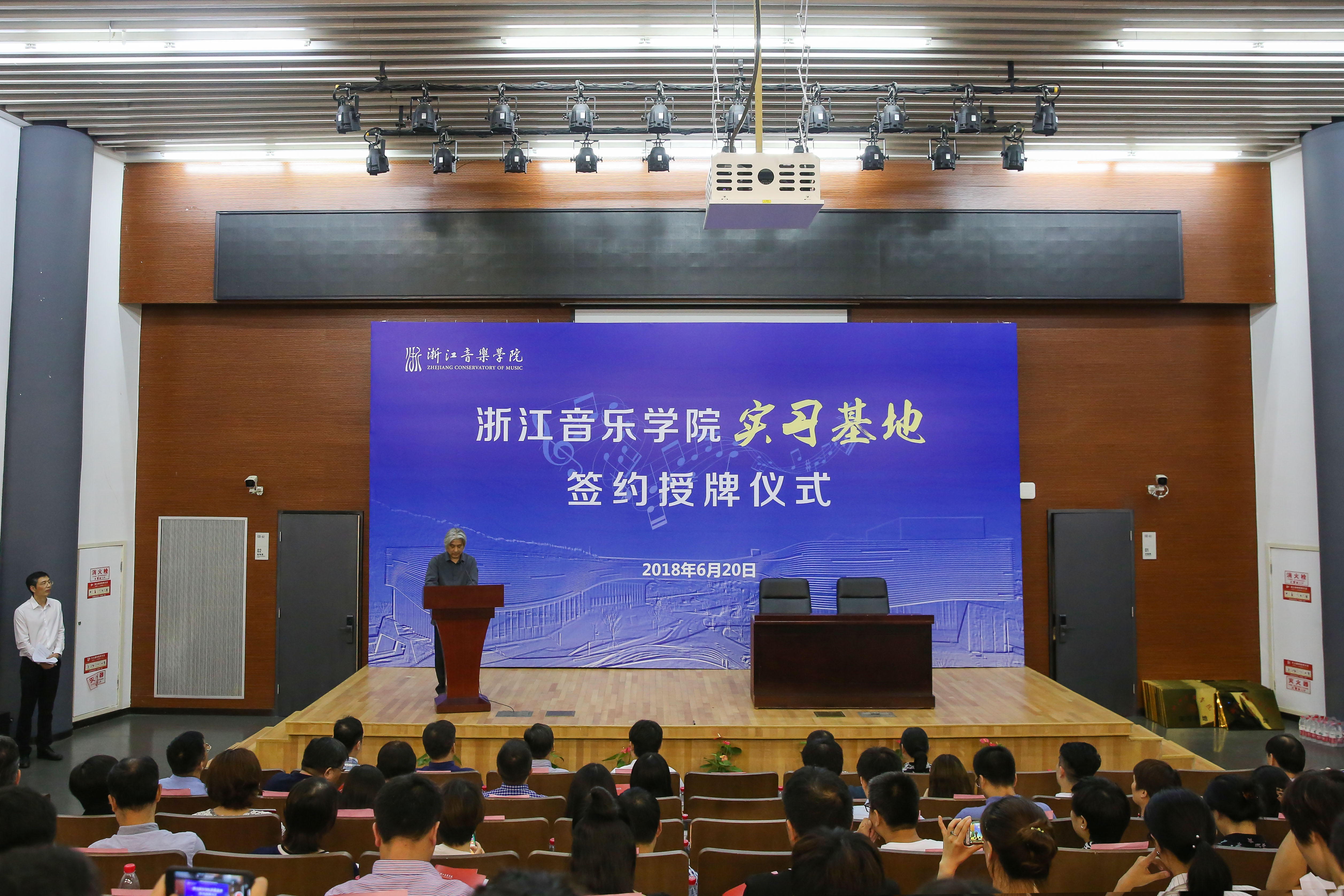 仪式上,杨九华指出,实习基地是学院服务社会、社会支持办学的重要载体,是专业人才培养的重要环节。学院高度重视实习基地建设工作,近年来一直积极筹划建设一批稳定的、可长期合作的实习基地。此次实习基地集体签约是一个重要的里程碑,希望大家在合作共赢、互惠互利的共识下,优势互补,携手并进,努力把实习基地建设成为一个校校合作、校企合作的典范,共同为社会培养出更多的优秀音乐人才,为文化浙江建设作出积极贡献。