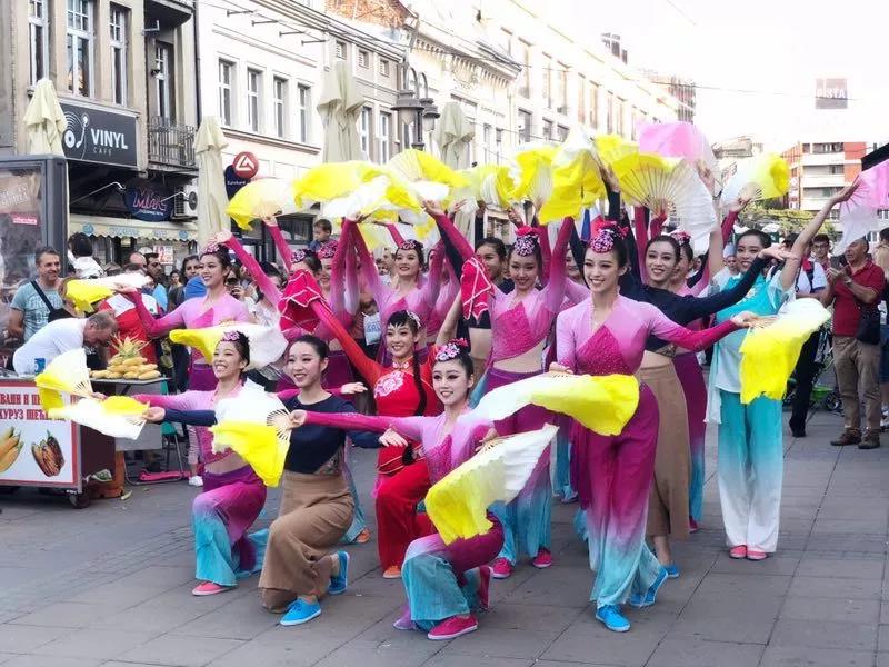 在保加利亚大特尔诺沃,舞蹈团将中国民间舞蹈带到了一个新的国际展现舞台。团员们以高涨的热情参加了“International Folklore Festival ”的游行、演出,并通过舞蹈语汇向世界传递中华民族的传统文化艺术之美。他们先后奔赴了小镇多布里奇、图特拉坎、卡赞勒克等地举行巡演,并与来自世界各国的青年以舞会友,开展艺术的碰撞和文化的交流。