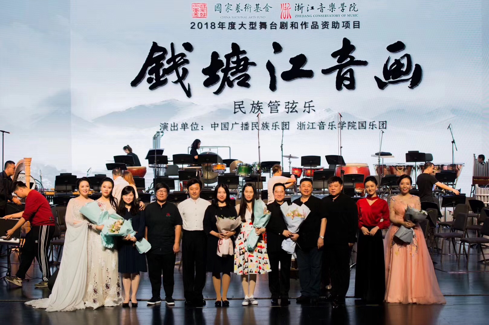 “八月十八潮,壮观天下无。”9月27日农历八月十八,国家艺术基金2018年度大型舞台剧和作品资助项目民族管弦乐组曲《钱塘江音画》在学院大剧院首演。副省长成岳冲,省文化厅党组书记、厅长、学院党委书记褚子育,省政府副秘书长蔡晓春,省文化厅、省建设厅、省水利厅、省商务厅、省旅游局、省文联、省广电集团、省旅游集团等优秀传统文化行动计划成员单位的领导,学院领导张建国、贾秀英、张鸿雁、杨九华,部分音乐界的专家、学者等共同观看演出。
