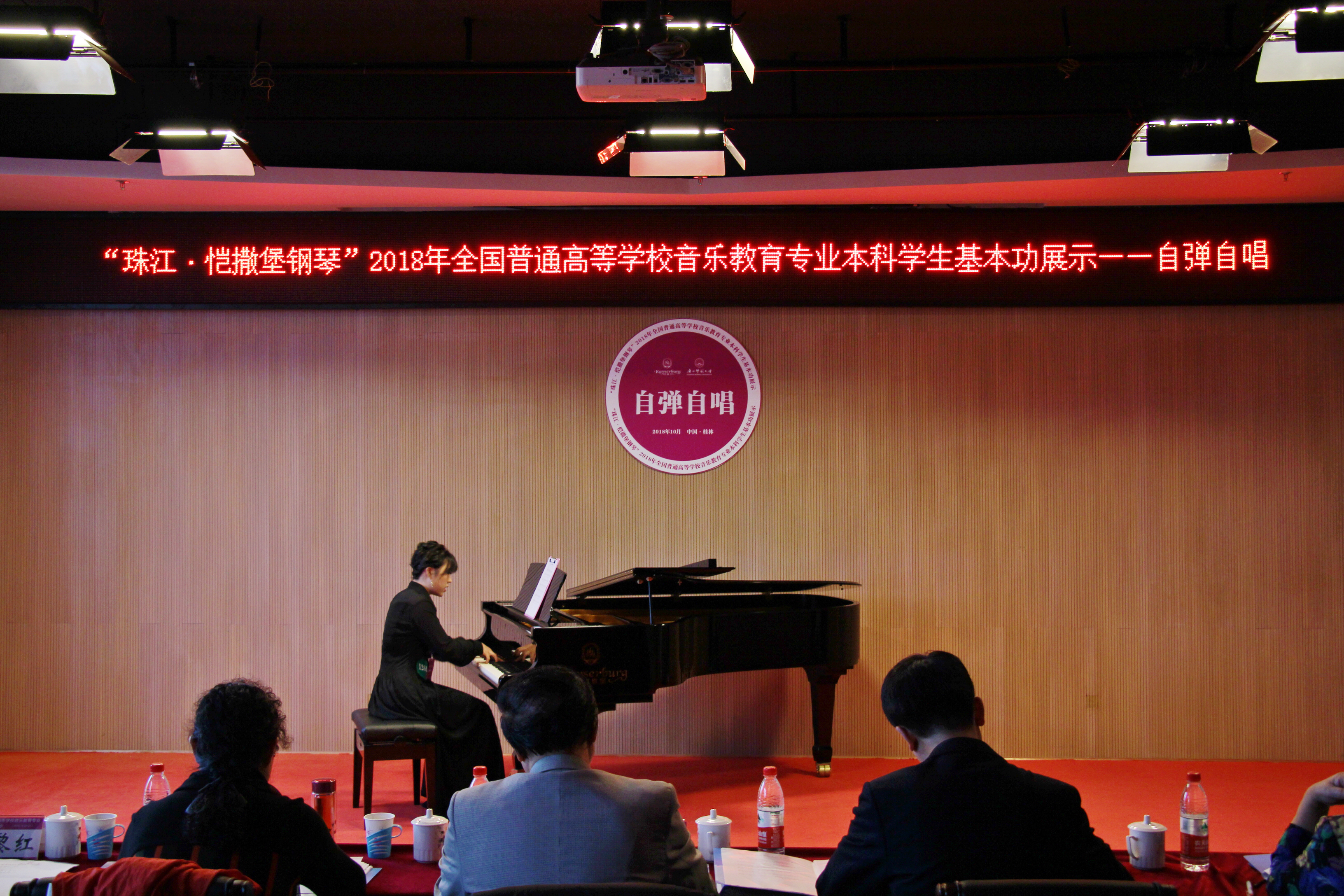 10月22日至26日,2018年全国普通高等学校音乐教育专业本科学生基本功展示活动在广西师范大学隆重举行,来自全国60所高校的180名学生参赛,主要展示内容包括音乐教学能力(歌唱与钢琴伴奏、自弹自唱、合唱指挥、中外乐器演奏、舞蹈展示)、“微课”展示、社会实践三部分,旨在全面检验全国音乐教育专业学生的人文素养和音乐教学能力。