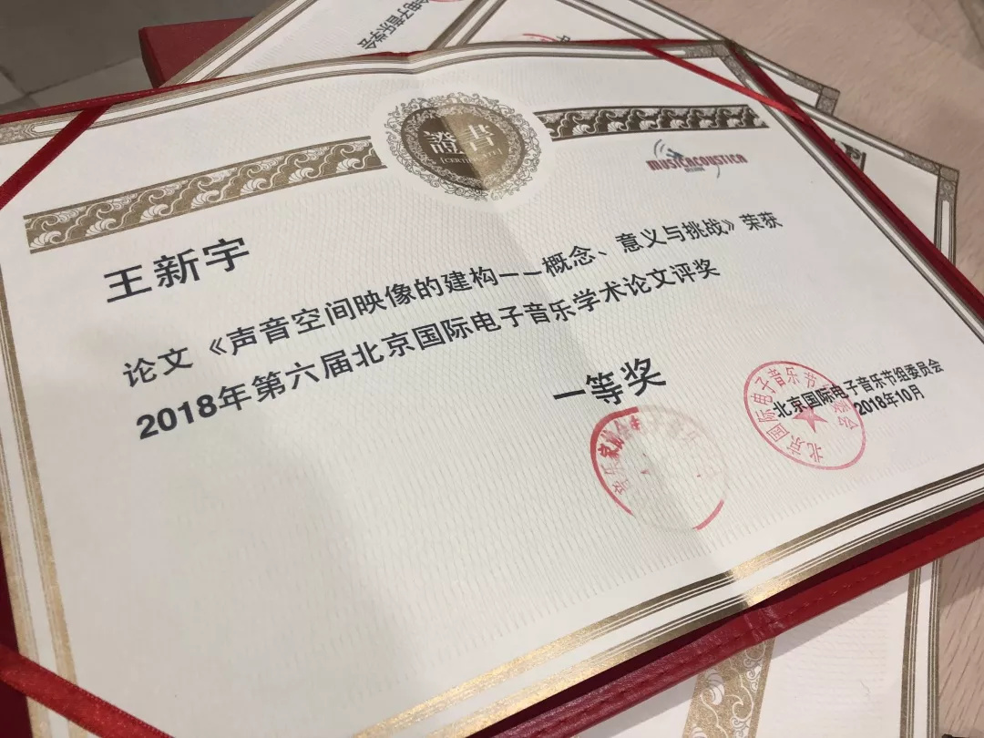 10月28日,北京国际电子音乐节闭幕式暨颁奖典礼在中央音乐学院举行。闭幕式上,组委会颁发了北京国际电子音乐作曲比赛的奖项与电子音乐学术论文奖项。我院音乐工程系教师王新宇的论文《声音空间映像的构建——概念、意义与挑战》获得北京国际电子音乐学术论文“一等奖”,学生方铭创作的媒体类电子音乐作品《棒人间》获得作曲比赛C组“二等奖”,学生何铮澄创作的媒体类电子音乐作品《悲怆》获得作曲比赛C组“三等奖”。由于连续两届北京国际电子音乐学术论文“一等奖”空缺,王新宇成为六年以来首位获此殊荣的人。