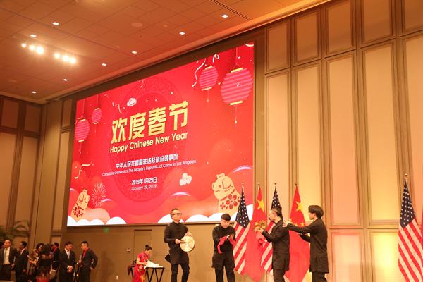 洛杉矶当地时间29日晚19点,我院艺术团受邀参加驻洛杉矶总领馆2019新春招待会演出。中国驻洛杉矶总领馆总领事张平及其夫人、美国国会众议员、加州众议员和参议员、洛杉矶县县政委员、圣盖博市议员、蒙特利公园市市长和议员、约巴林达市议员等地方民选官员以及南加州近600多位中美各界人士观看了演出。