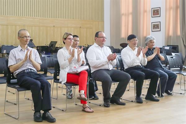 随后,佐尔坦一行还参观了校园,并欣赏了国乐系学生的演出排练。