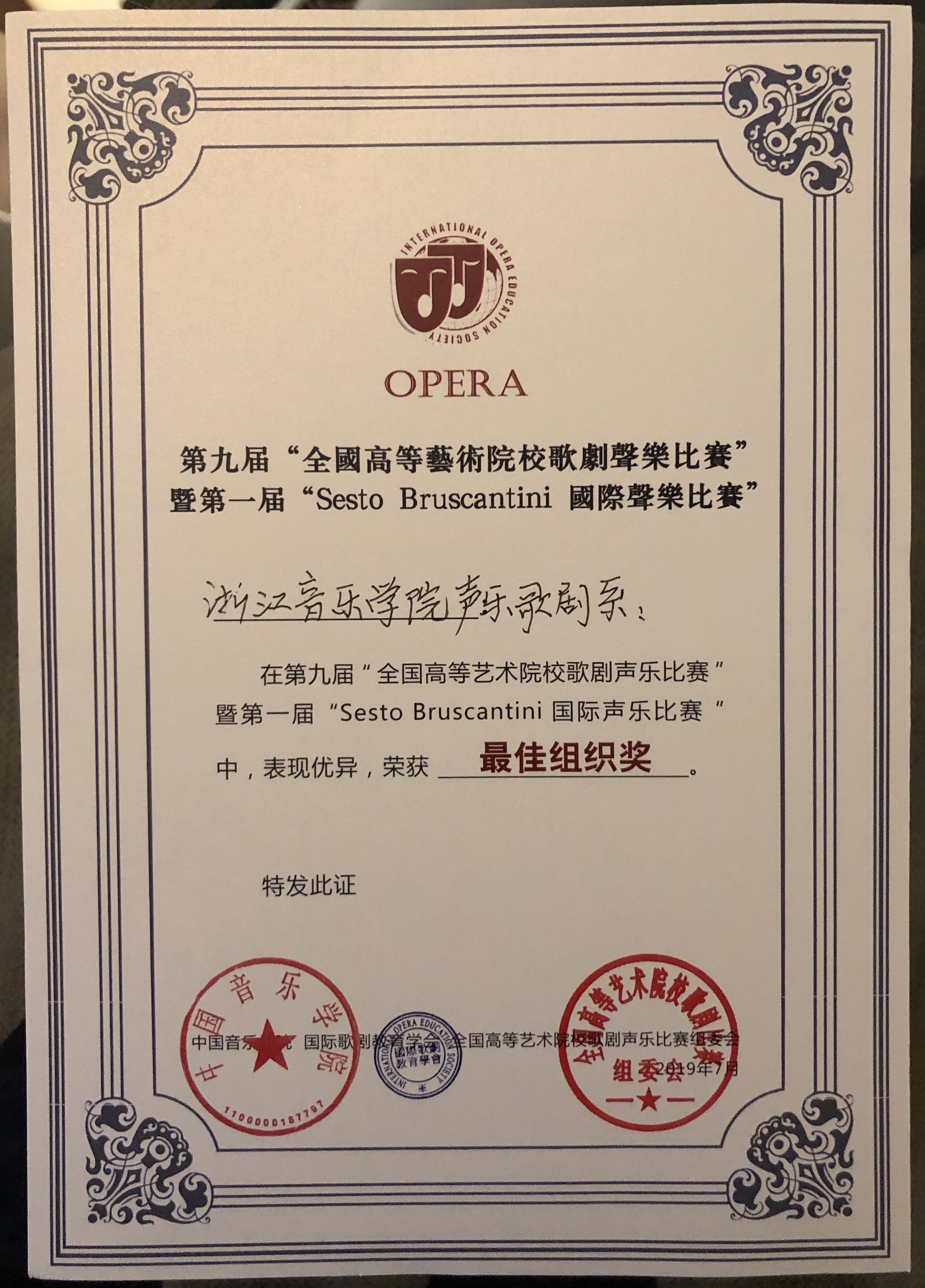 现场,近千名展演选手从世界各地汇聚在青岛,共同参与此次声乐展演的盛况。我院学生充分展现优秀的专业素养,在展演中发挥出色,取得优异成绩。在歌剧重唱片段组决赛中,方格、叶瑜嘉、张莹、万树坤、刘一鸣演唱的五重唱《我们有一个大事件》选自歌剧《卡门》片段获得一等奖;梁齐蓉、康康国玉、李想、杜柏林、金振宇演唱的五重唱《我们有一个大事件》选自歌剧《卡门》片段获得二等奖;梁齐蓉、金振宇、王美玲、杜柏林、李洋、高艺芳演唱的民族歌剧《雷雨》片段,金振宇、王美玲演唱的二重唱《四凤,我的小羊》选自歌剧《雷雨》,熊同天、薛昊明演唱的二重唱《一会儿,我们悄悄去花园》选自歌剧《唐帕斯夸勒》获得三等奖。在歌剧咏叹调专业院校本科生组决赛中,康康国玉、王博获独唱类二等奖,熊同天获得三等奖,贾梦颖、王馨获得优秀奖。在中国作品专业院校本科生组决赛中,雕珊婷、覃苑旻、刘鸿枭、周先扬获得优秀奖。在外国艺术歌曲专业院校本科生组决赛中,薛昊明获得优秀奖。在外国艺术歌曲综合院校本科生组决赛中,楼业达获得优秀奖。学院声乐歌剧系教师陶维龙、胡雁、张蓉、刘伟获得“优秀指导教师奖”,学院声乐歌剧系教师金麦克荣获“优秀艺术指导奖”,声乐歌剧系获得最佳组织奖。