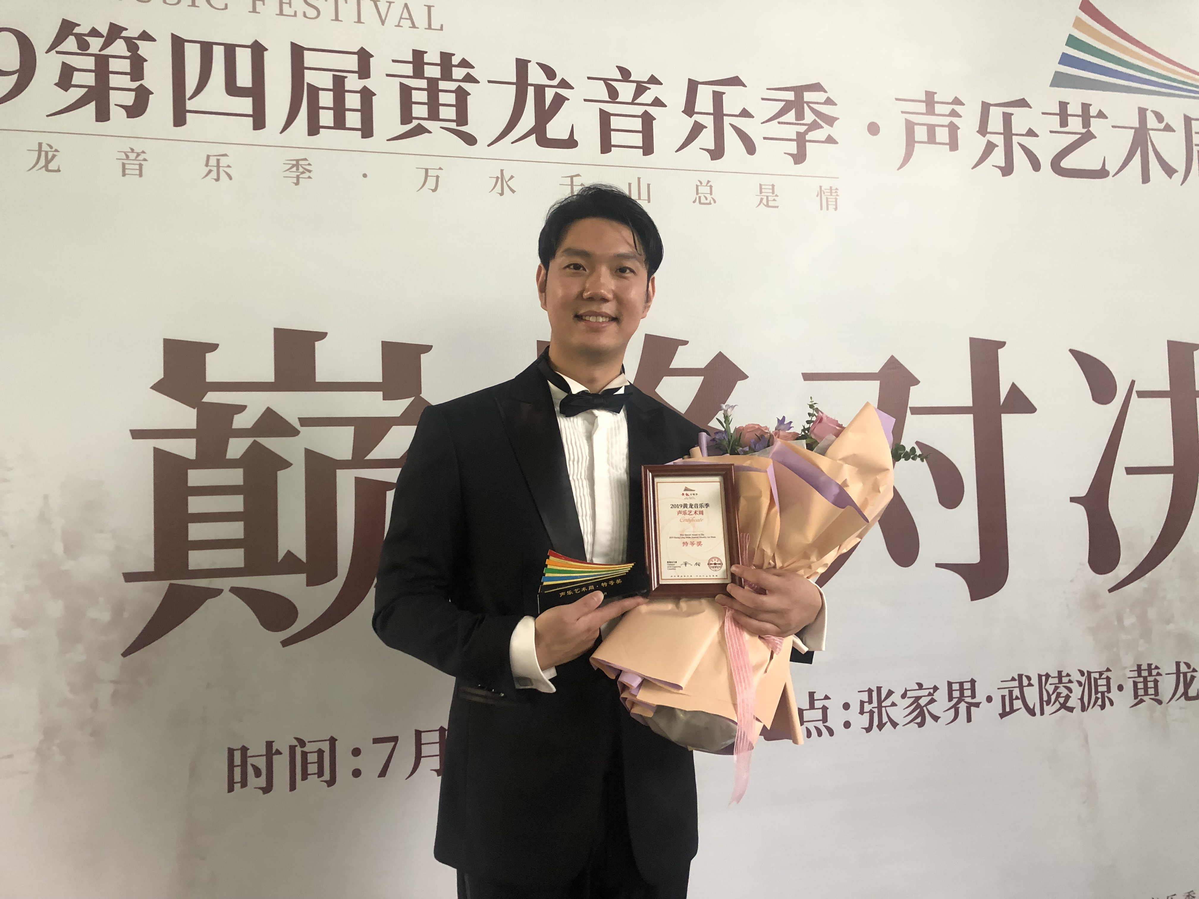 7月30日上午,2019黄龙音乐季·声乐艺术周巅峰对决赛暨颁奖典礼在张家界武陵源黄龙哈利路亚音乐厅举行。现场,12位巅峰对决挑战者在近千人的激烈角逐中脱颖而出,展开王者之战。我院声乐歌剧系青年教师刘涛于29日经过激烈比拼,荣获专业美声组—教师和专业院团演员组金奖,并获得了美声组唯一的巅峰对决名额。最终,在巅峰对决中,刘涛以完美的声音、强烈的艺术感染力赢得了评委的高度认可(现场投票15票)和现场观众的热烈掌声,获得了象征最高荣誉的2019黄龙音乐季·声乐艺术周特等奖30万元艺术发展资助金。