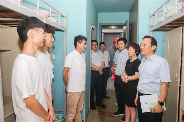 上午,学院领导胡建新、王瑞、张建国、贾秀英、方培新、杨九华等先后来到报到现场,看望新生及家长,慰问迎新工作人员,并还走访了新生寝室,与同学亲切交流,关心学生的家庭情况和报到情况。