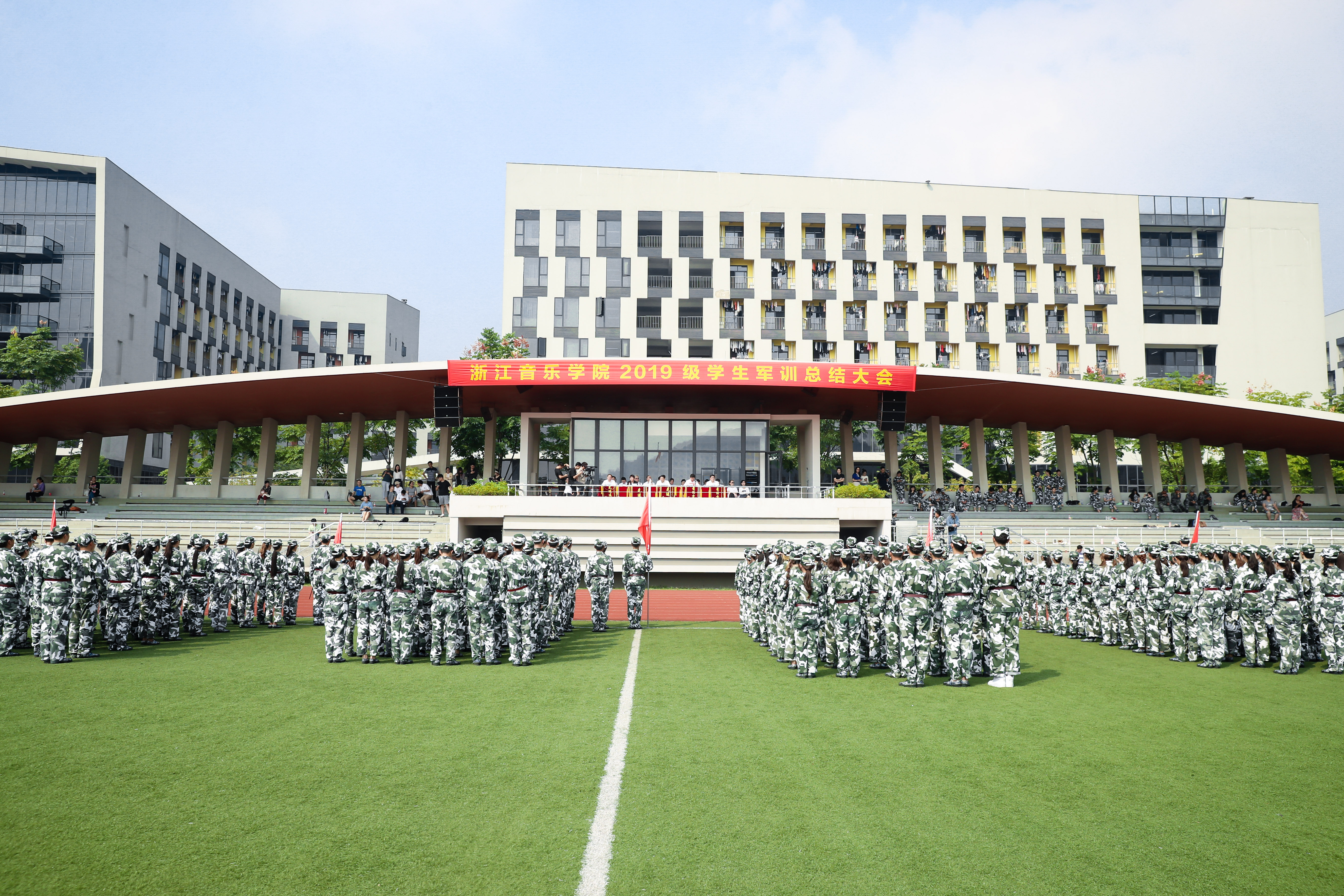 三名小号手吹响集结号,分列式表演正式开始,10个军训排依次走过主席台接受领导的检阅,各个方阵配合娴熟、动作整齐、目光坚定、口号嘹亮,他们的精彩表现赢得了全场观礼观众一致好评和阵阵掌声,展现出浙音新生经过军训洗礼后良好的精神风貌和军事素质。分列式结束后,进行了精彩的团体操、军体拳表演,以及特别为纪念中华人民共和国成立70周年精心准备的精彩表演,展现了优秀的品质与坚强的意志,表达了对祖国美好未来的深深祝福。