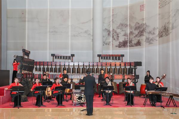 揭幕仪式上,国乐室内乐团的师生们演奏了由青年古筝教师刘乐创作的编钟与民族室内乐作品《岁岁年年》,让在场嘉宾感受到编钟和传统民乐的独特魅力。