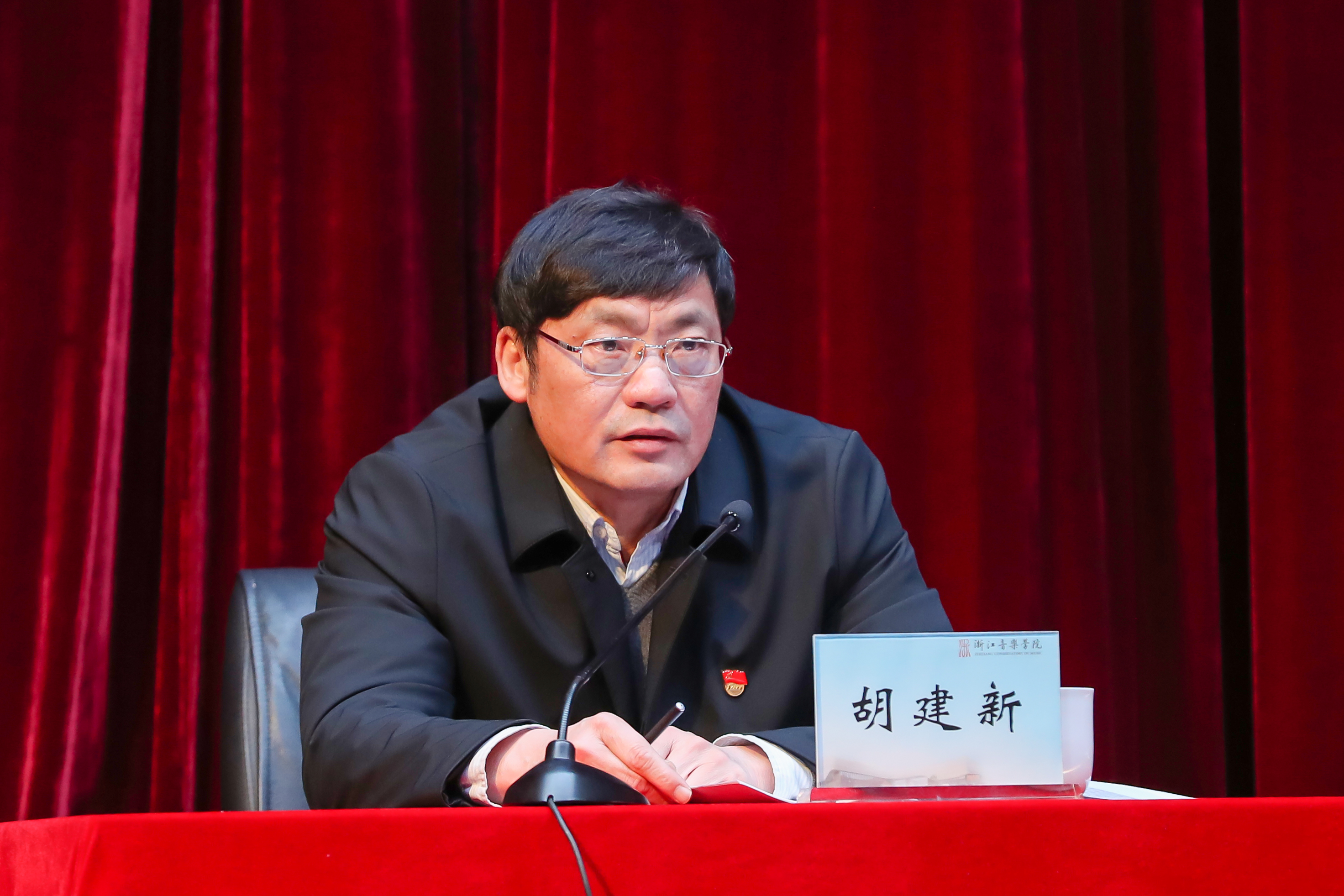 胡建新强调,要认真学习贯彻习近平总书记重要讲话精神,始终践行为党育人、为国育才的初心使命,持续巩固和扩展主题教育成果。一要在学懂弄通做实习近平新时代中国特色社会主义思想上狠下功夫;二要在深入推进学院治理体系和治理能力现代化上狠下功夫;三要在锻造忠诚干净担当的高素质专业化干部队伍上狠下功夫;四要在加快推进内涵发展取得重大突破上狠下功夫;五要在践行以人民为中心的发展思想上狠下功夫;六要在坚定不移推进全面从严治党上狠下功夫。