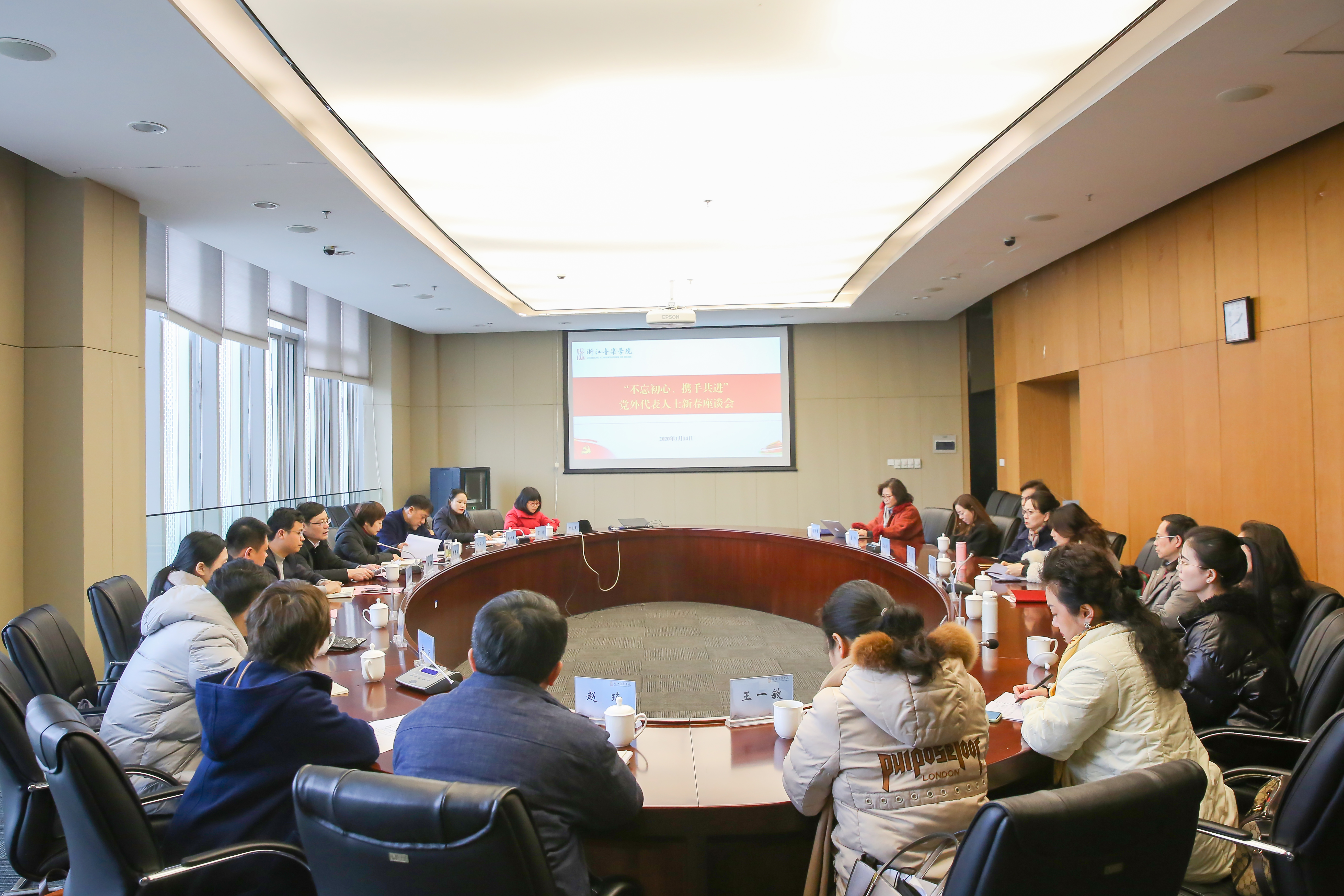 1月14日下午,学院召开“不忘初心、携手共进”党外代表人士新春座谈会。学院党委书记胡建新,党委副书记贾秀英,统战部负责同志、各民主党派和无党派代表成员,欢聚一堂,互致问候,畅叙友情,共话发展。