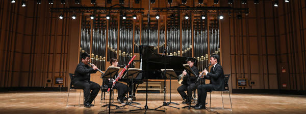 音乐会在宁峰与黄秋宁两位演奏家联袂演奏的贝多芬F大调第五小提琴与钢琴奏鸣曲《春天》中拉开帷幕。两位演奏家的演奏珠联璧合,音色华丽而不失优雅,征服了在场的每位观众。随后,田益民、王晓通、郑欣、田泽辉和盛义淳5位同学为观众带来W.A.莫扎特的《降E大调钢琴木管五重奏》,高水平的演奏将莫扎特特有的活泼灵动发挥得淋漓尽致。中场休息后,宁峰、刘瓅元两位演奏家带来了亨德尔的《帕斯卡利亚舞曲》,中提琴与小提琴在两位演奏家的手中,音色和谐且各具特色,令观众们醉心其中。王宇萌、杨双祎、张馨日3位同学演奏的W.A.莫扎特谱的《降E大调单簧管、中提琴、钢琴“卡格斯塔特”三重奏》也相当精彩,音乐风格鲜明、表现形象生动。音乐会最后一部作品,是由邵润泽、杨晨阳、倪汉文、陈珂然和王心宇5位同学演奏的舒曼《Piano Quintet in E flat Major》(Op.44),优美的乐曲在音乐厅回荡共鸣,感染力十足。