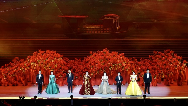 6月27日晚,浙江省庆祝中国共产党成立100周年大型交响诗画文艺演出《百年红船 扬帆远航》在黄龙体育中心体育馆上演,以艺术的形式回顾党的奋斗历程、讴歌党的光辉业绩、祝福党的百年华诞。省委书记袁家军出席并致辞,郑栅洁、葛慧君、黄建发等省党政军领导,在杭副省以上老同志,省直有关部门主要负责人及全省各界党员干部群众代表等2000余人汇聚一堂,共同观看了演出。演出由省委宣传部、省文化和旅游厅、浙江广播电视集团主办,学院和浙江演艺集团、浙江省黄龙体育中心承办。