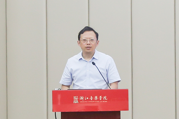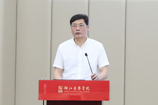 院长王瑞作题为《深化培养模式改革,构建浙音研究生教育高质量发展新格局》主旨报告。他指出,习近平总书记关于研究生教育的重要指示深刻揭示了我国研究生教育发展的大方向、大趋势、大格局,是学院下一步做好研究生教育工作的根本遵循和行动指南。王瑞介绍了当前我国研究生教育新形势,分析了学院研究生教育的现状和存在的问题,着重从构建符合艺术学科规律的现代研究生教育培养机制、深化研究生培养模式改革、加强学位点和学科方向建设、提高人才培养质量等方面作出部署。他指出,本次会议是浙音建校以来的首次研究生教育专题会议,对学院研究生教育发展具有里程碑意义,全院上下要进一步统一思想、凝聚共识,明确研究生教育工作的目标定位和主要任务,立足新发展阶段,树立新发展理念,以问题为导向,深化研究生培养模式改革与创新,建构浙音研究生教育高质量发展新格局。