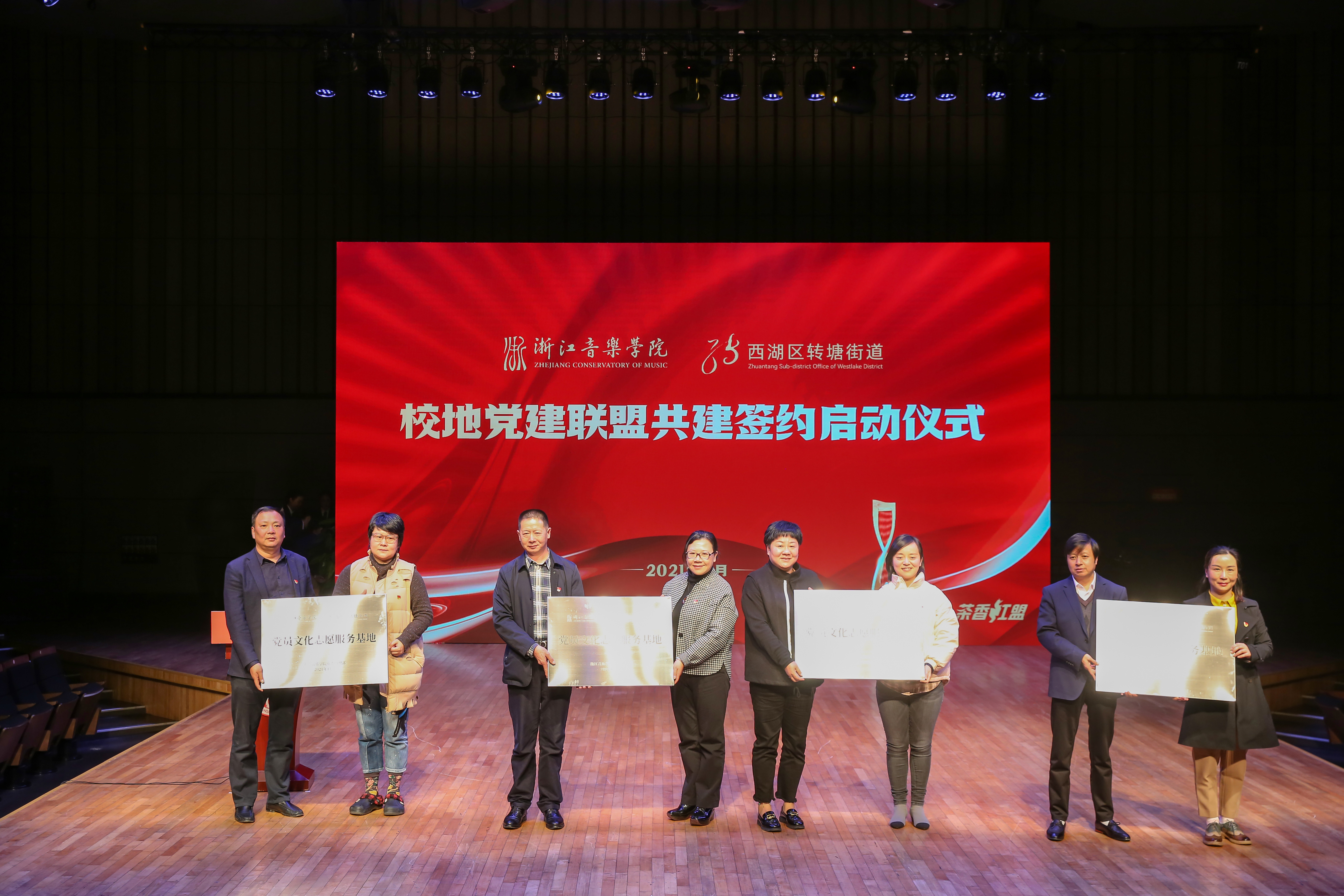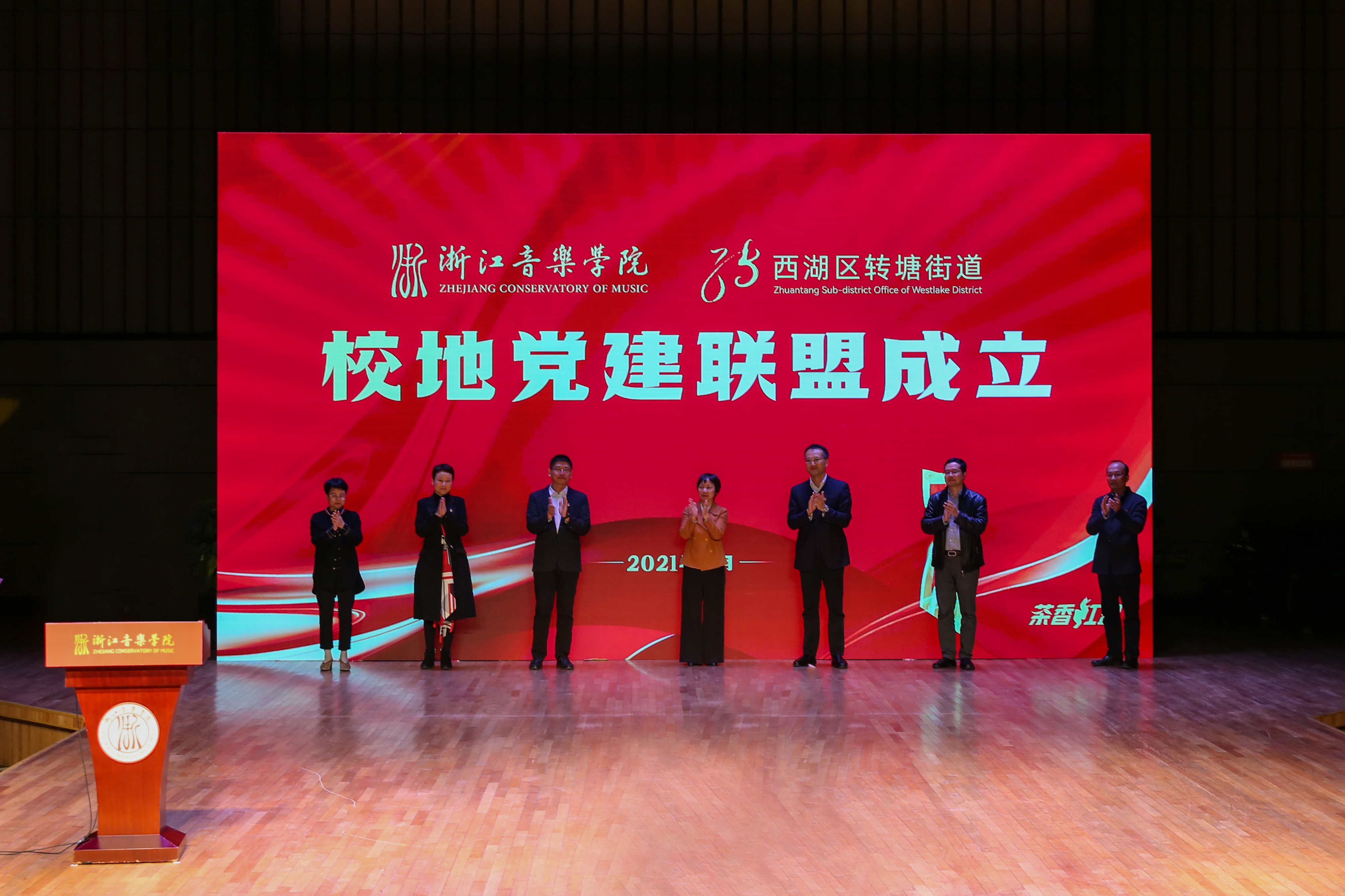 为贯彻落实省委基层党建工作会议精神和省委文化工作会议精神,进一步助力打造之江艺术长廊建设,强化红色美育赋能未来乡村建设,11月10日下午,学院与转塘街道党建联盟共建启动仪式在现代音乐厅举行。学院党委副书记贾秀英,党委委员、组织部部长、统战部部长奚丽萍,党委委员、宣传部部长、教师工作部部长李俊,西湖区委常委、组织部长陈宇,西湖区转塘街道党工委书记沈剑,西湖区委组织部副部长何里扬等出席启动仪式。
