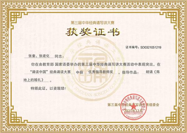 据悉,中华经典诵写讲大赛由教育部、国家语委主办,以诠释中华优秀文化内涵、彰显中华语言文化魅力、弘扬中国精神为目标。作为人文社会科学类的学科竞赛项目,学院高度重视,积极组织动员,加强各项保障,经过3年的努力,终于实现了在该赛事上的重大突破。今后,学院将继续以此为平台,积极推广中华优秀传统文化,推进校园文化建设,进一步增强大学生的民族自豪感和文化自信心。