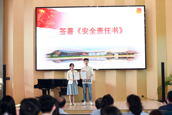 仪式上,学院团委负责人与实践团教师代表签署《安全责任书》。指导教师代表和声乐歌剧系“文化润疆·声乐轻骑兵”实践团负责人分别做表态发言。