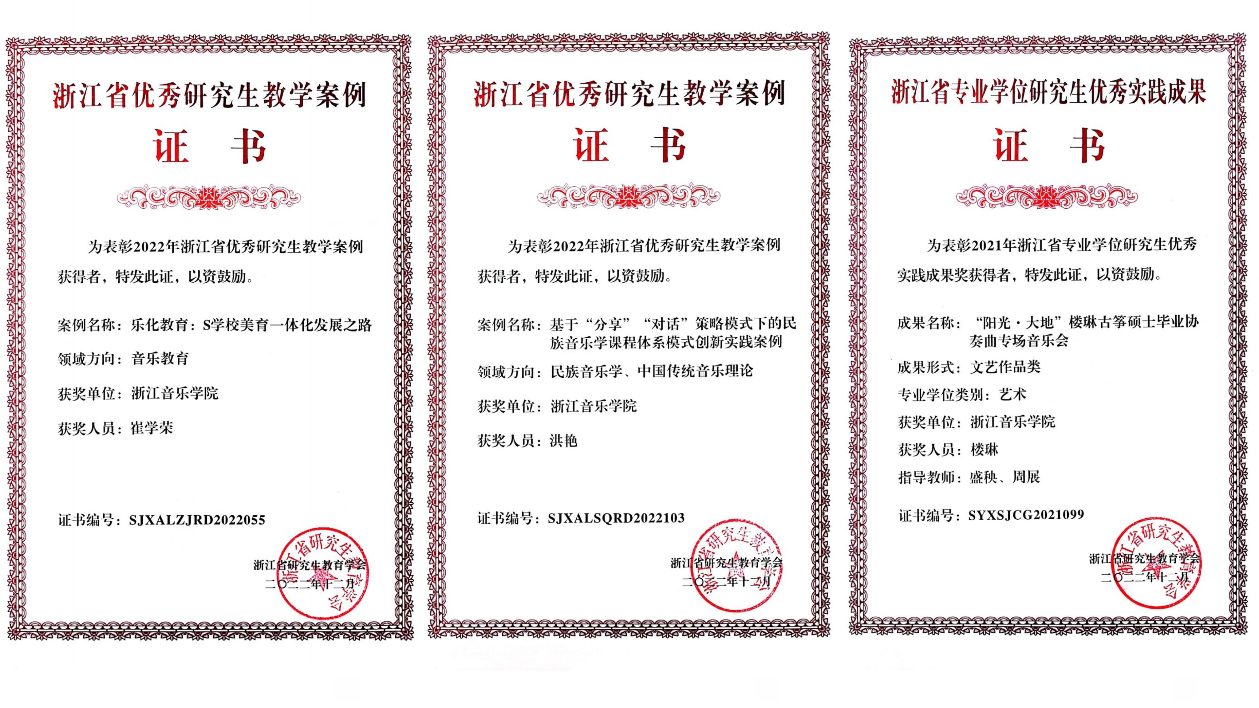 与此同时,浙江省教育厅办公室公布了浙江省优秀研究生课程立项建设结果,学院成功获批省级优秀研究生课程建设4门,再次创下近年来我校获批省级研究生课程门数新高。此外,学院还获批浙江省研究生优秀研究生教学案例两项和浙江省专业学位研究生优秀实践成果一项。