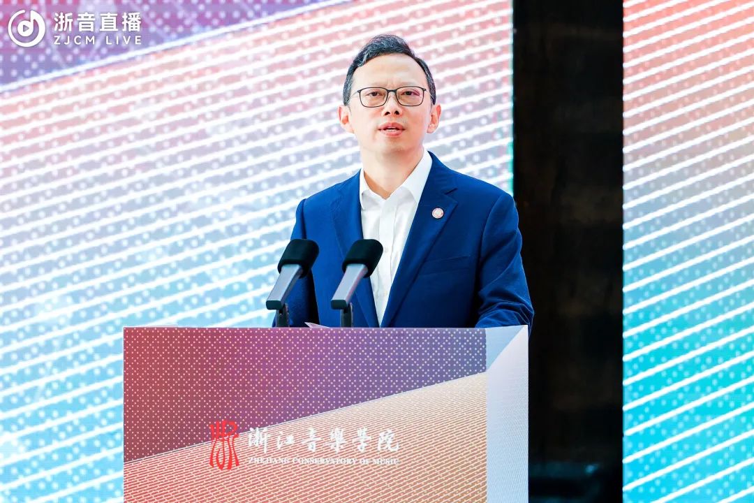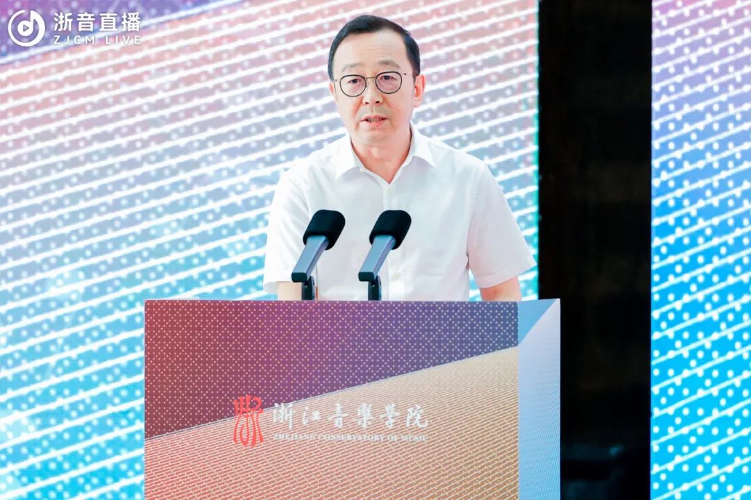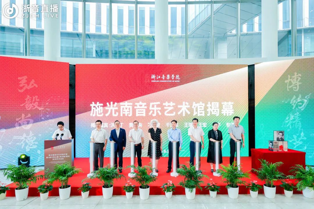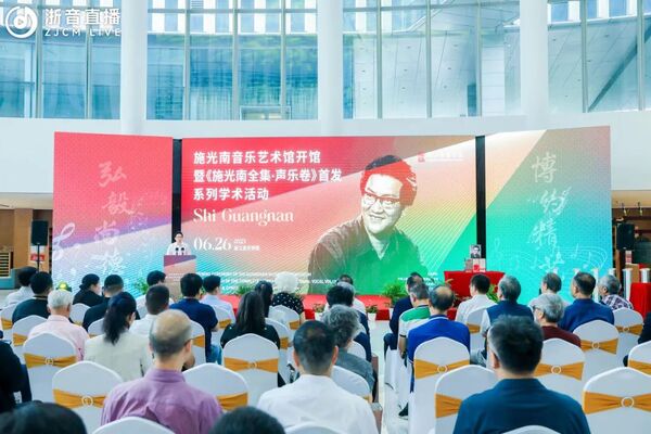 院长王瑞对与会嘉宾的到来表示热烈欢迎。他表示,施光南一生创作和留下了大量歌颂党、歌颂祖国、歌颂人民、歌颂时代的优秀作品,艺术性、时代性、人民性是施光南作品最鲜亮的底色和最鲜明的标识。洪如丁女士和家人将施光南先生的作品手稿、藏书、音像资料以及一批生活和工作用品等珍贵资料文物捐赠给浙音,用于学校的人才培养和教学科研,体现了施光南先生生前一贯的对家乡故土的深情厚谊,更是将传承弘扬施光南先生的艺术理想、艺术精神这一光荣使命交付给了浙音。施光南音乐艺术馆的落成既是浙音对施光南艺术人生的缅怀和纪念,也是对施光南先生艺术成就、艺术精神的追崇和传承,必将成为一代代莘莘学子学习、研究、感悟和继承施光南先生艺术精神和人民情怀的生动课堂。
