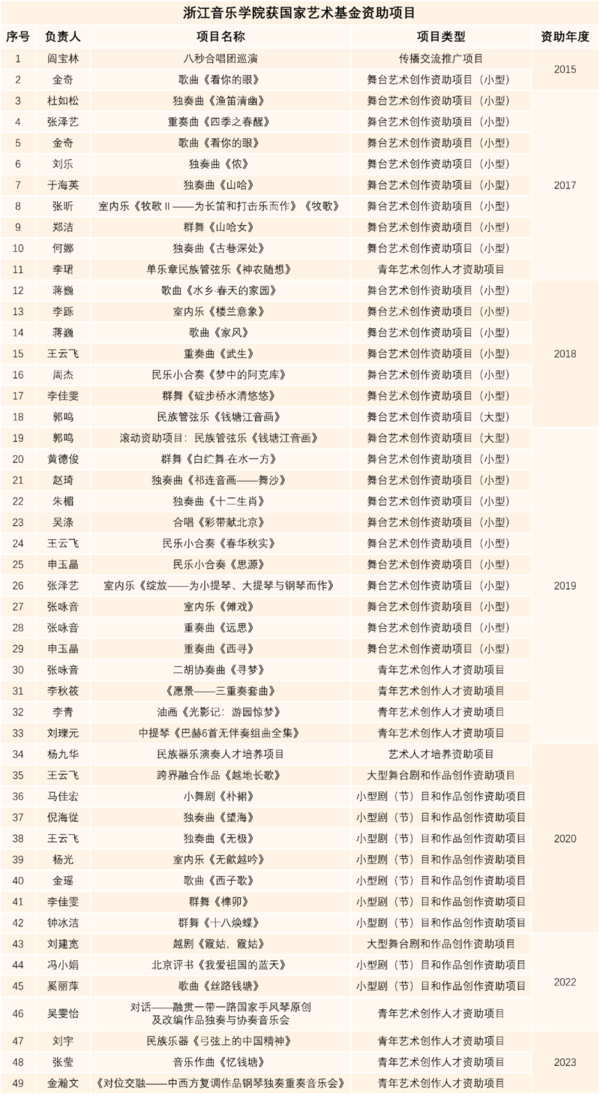 近年来,学院紧紧围绕“高水平一流”音乐建设目标,立足高起点规划,高标准建设和高水平办学,充分把握艺术人才培养和艺术创作生产的规律,深入践行“事必尽善”校训精神,积极构建艺术创作平台,不断优化艺术创表机制,着力打造文艺精品力作,先后立项国家艺术基金49项,科研艺创工作取得快速发展,为助力文化强省建设和文艺事业繁荣发展贡献重要力量。