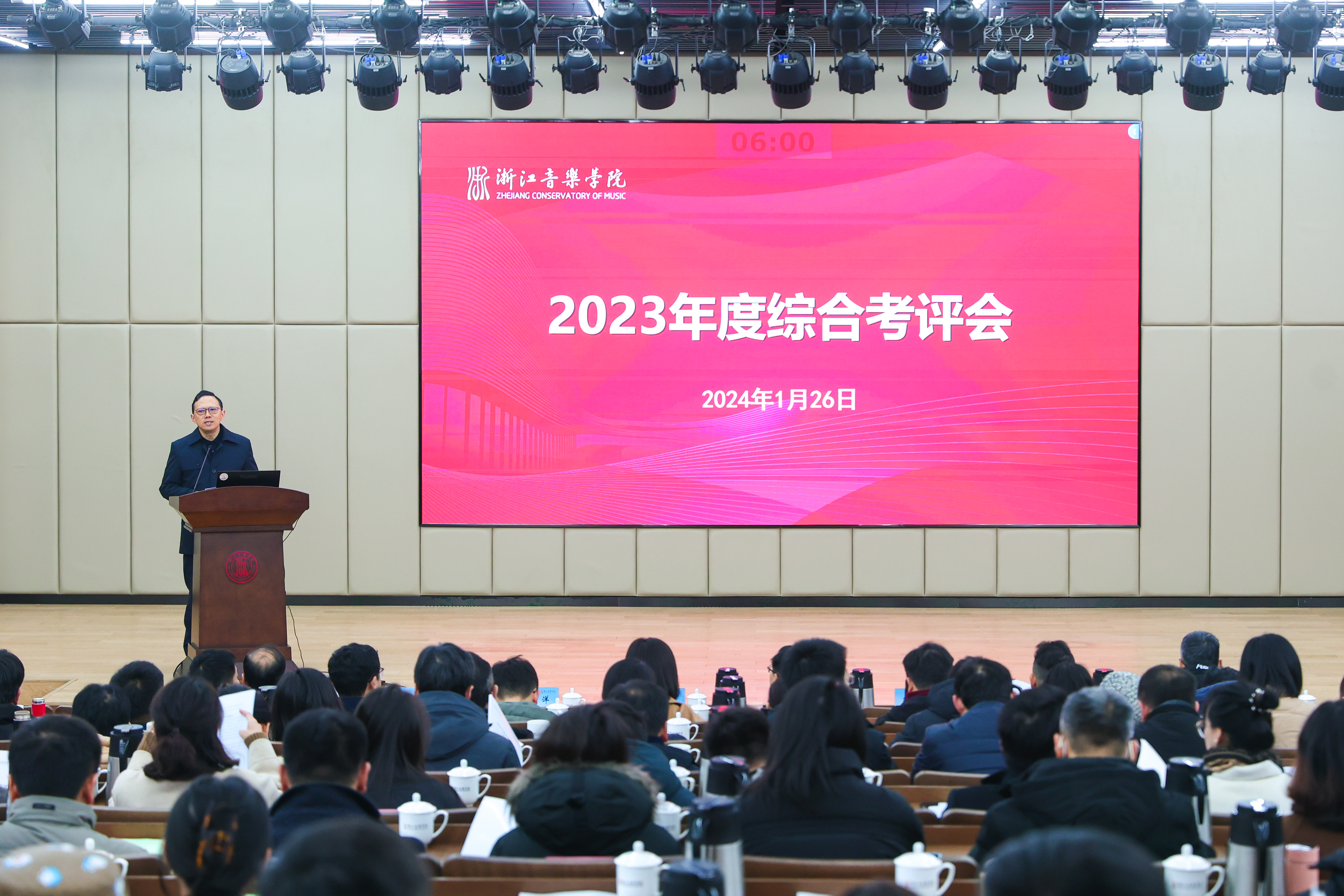 王瑞在总结讲话中指出,2023年,在学校党委的坚强领导下,各单位、各部门坚持“高水平一流”音乐学院发展目标,以改革创新没有起跑线的行动力、创新力和执行力,开辟了浙音发展的新局面。他对假期工作进行了部署,一要科学谋划2024年重点工作。坚持高起点规划、高标准建设、高质量发展、高水平目标的“四高”原则,结合学校发展最新形势,加强顶层设计,注重战略谋划和战术布局,为学校新的一年发展谋好篇、布好局,开好头。二要高质量高标准做好招生考试工作。认真做好2024年度校考的组织和保障工作,确保各项工作平稳有序开展,要进一步加强对全体教职工纪律教育,严守招生纪律红线。三要认真做好校园安全稳定工作,加强安全隐患排查及治理,及时消除安全隐患建设平安校园,守牢安全底线,精准掌握寒假留校师生情况,加强关心关爱和服务保障。四要坚持廉洁过节,认真贯彻落实“廉洁自律准则”等要求。
