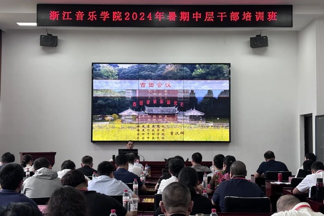 干武东要求,全体学员要深刻认识此次培训的重要意义,深刻领悟古田会议精神、大力弘扬调查研究优良传统,要坚持学有所获、学以致用,为建设高水平一流音乐学院提供坚强保障。一是要明确“学”的方向。深刻理解本次培训班是深入学习贯彻党的二十届三中全会精神和省委十五届五次全会精神的需要,是加强中层领导班子和领导干部思想政治建设的需要,是建设高水平一流领导骨干队伍的需要。二是要注重“学”的方法。要坚持原原本本学,不断提高马克思主义理论水平,用科学的理论来统领工作;坚持带着问题学,提升调研能力,更好地推动学校重点改革攻坚任务和重点推进项目落细落实,更好地解决好师生面临的急难愁盼问题。坚持联系实际学,努力寻找到符合本单位的改革创新之道,切实做到知行合一、融会贯通。三是要提升“学”的成效。要学出风清气正的“好生态”、学出改革创新的“精气神”、学出浙音干部的“好形象”,聚焦“大党建”“大改革”“大人才”“大成果”,在高水平一流音乐学院建设中奋发有为。