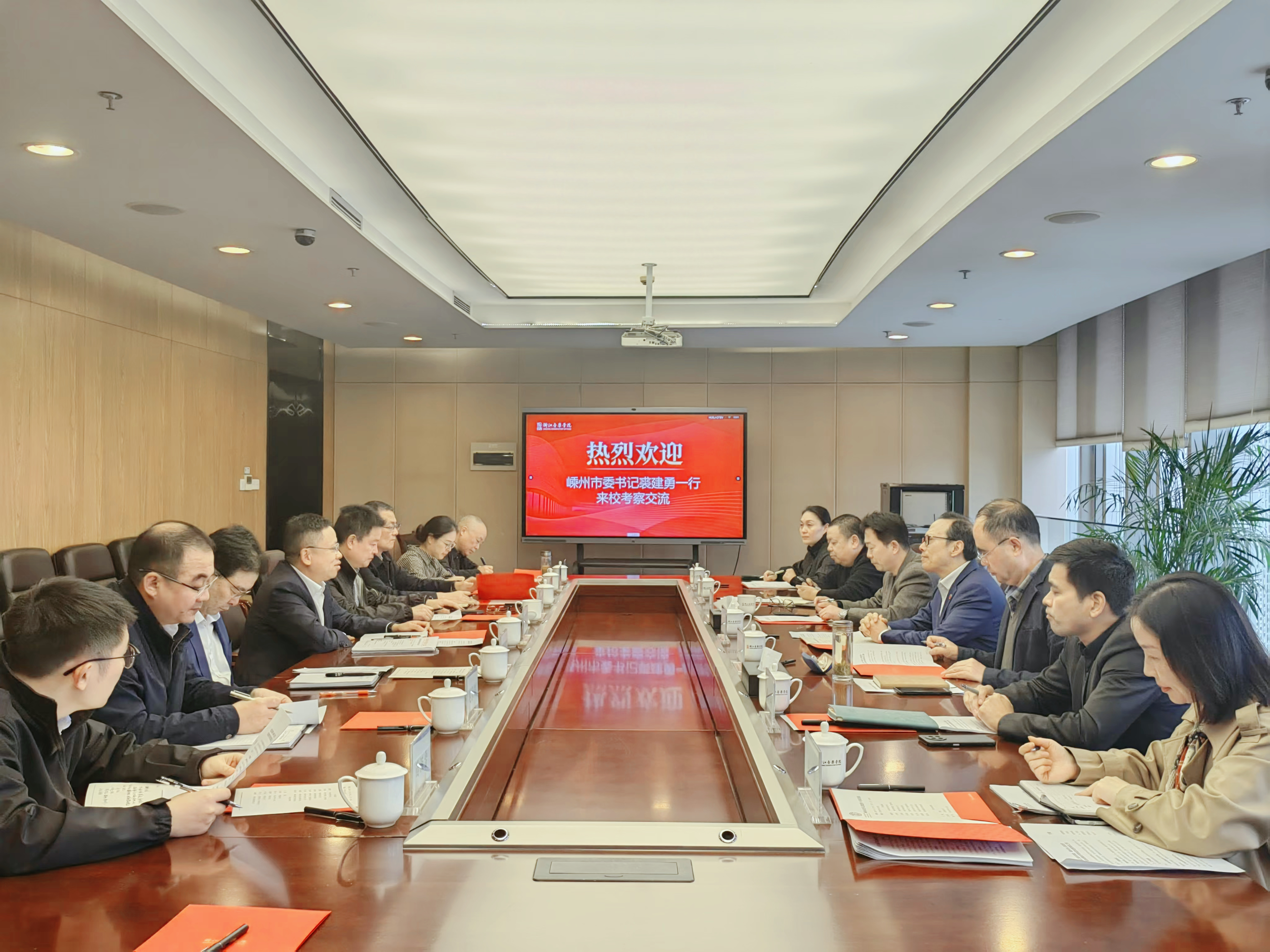11月19日上午,嵊州市委书记裘建勇,市委常委、宣传部部长史向俊一行来访合作交流,双方围绕加快推进校地共建与合作办学举行座谈。党委书记干武东、副院长汪洋等与之会见,院长王瑞、党委副书记王均寅出席座谈会。