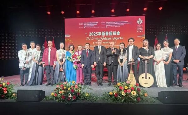 演出结束后,乐团一行还参加了使馆举行的新春招待会,来宾纷纷盛赞中国优秀传统文化,祝福中国新年,期盼中拉两国人民加强友好合作。