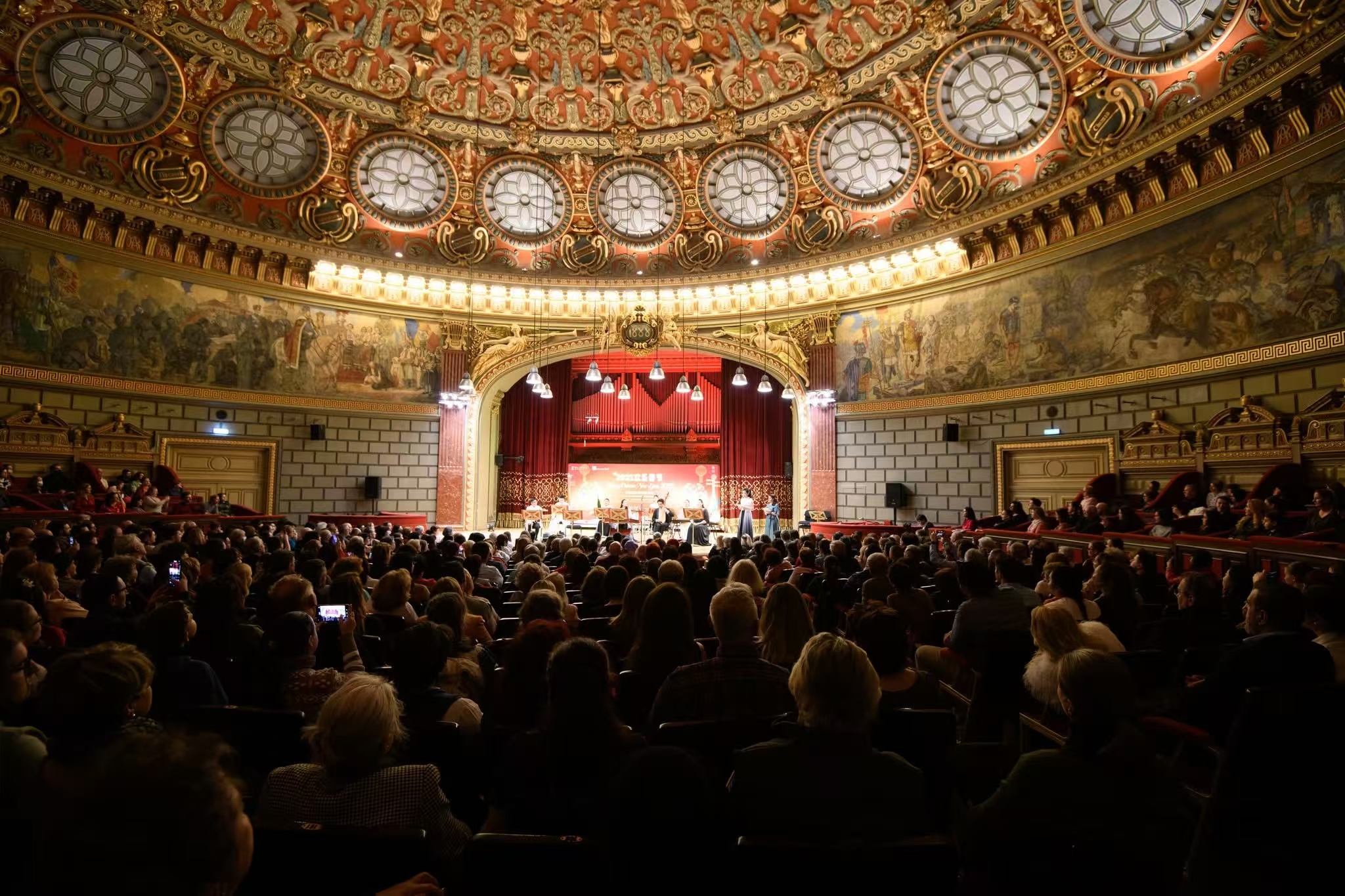音乐会以《金蛇狂舞》开场,旋律昂扬、铿锵有力的演奏,瞬间点燃现场气氛。随后,《采茶舞曲》《战马奔腾》《梅花韵》《十面埋伏》等精彩曲目接连上演,观众们沉浸在中国民乐的世界,真切感受传统艺术的无限魅力。最后演奏的罗马尼亚民间乐曲《云雀》将音乐会推向高潮,观众纷纷举起手机记录下这一难忘和美妙的瞬间,曲终后欢呼声和掌声响彻音乐厅。演出获得当地观众高度评价,更有罗马尼亚观众在采访中表示,“这是一场颇具戏剧效果的演出,笛子和二胡发出云雀‘叫声’的时候,我们全场观众都沸腾了”。