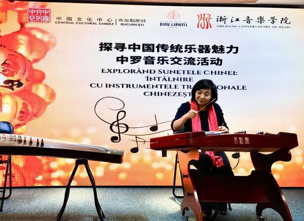 在罗马尼亚期间,闻莺江南丝竹乐团还与罗马尼亚迪努・利帕蒂国家音乐学院联合举办“探寻中国传统乐器奥秘”文化交流活动。国乐系教师向罗马尼亚学生介绍了扬琴、二胡等传统乐器知识并演奏乐曲,学生们兴趣盎然。活动结束后,双方还就开展国乐合作交流事宜进行探讨商洽。